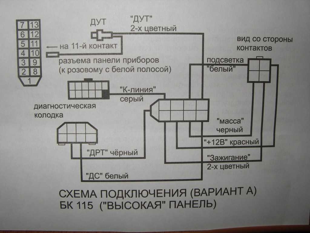 сигнал расхода топлива(зелёный провод) зажигание(оранжевый провод) + 12 вольт(красный/белый провод)красный провод с белой полосой масса(чёрный) датчик скорости(коричневый провод) 6к-линия(чаще всего серый или чёрный провод) mute(зелёный/красный провод)зелёный провод с красной полосой