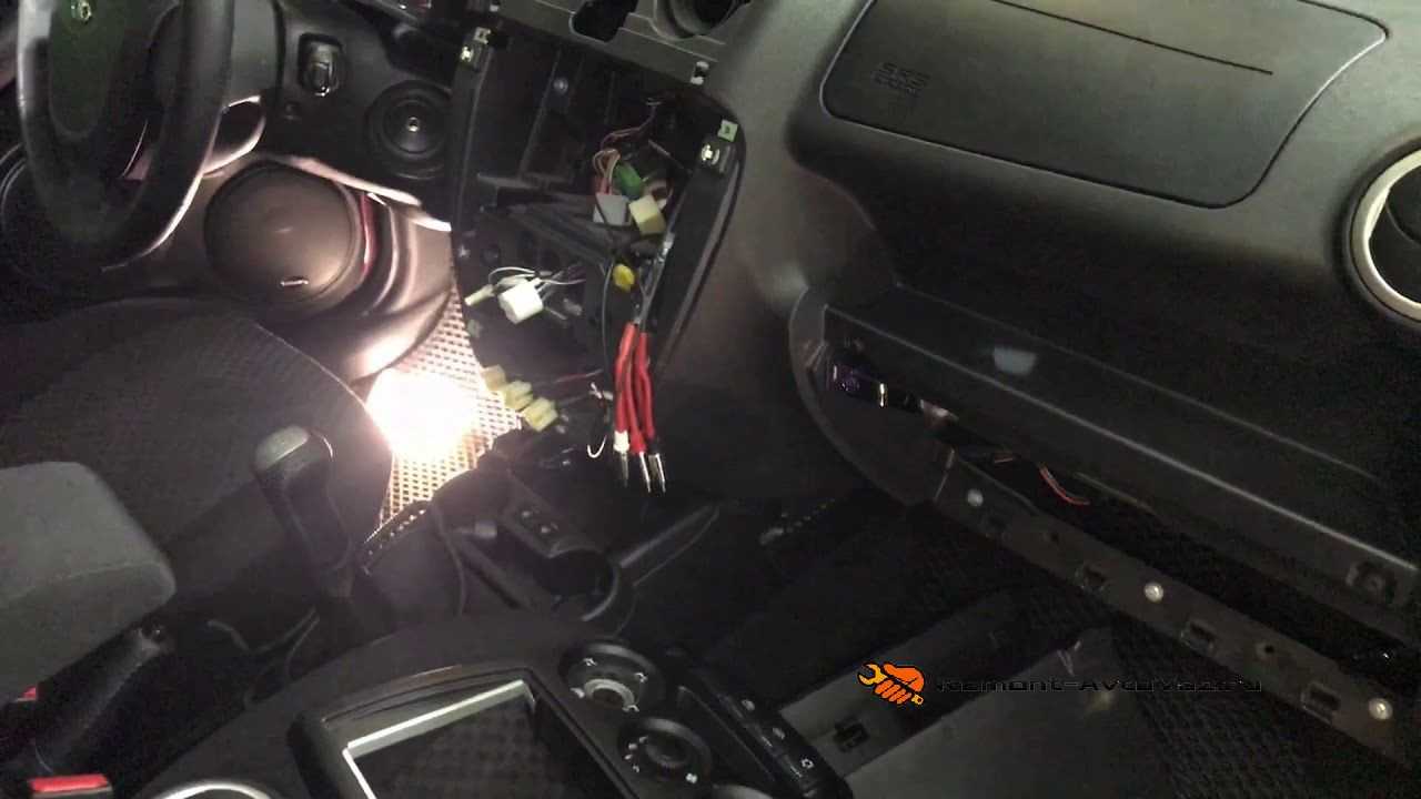 - После проделанных мероприятий возвращаем на место панель и магнитолу.