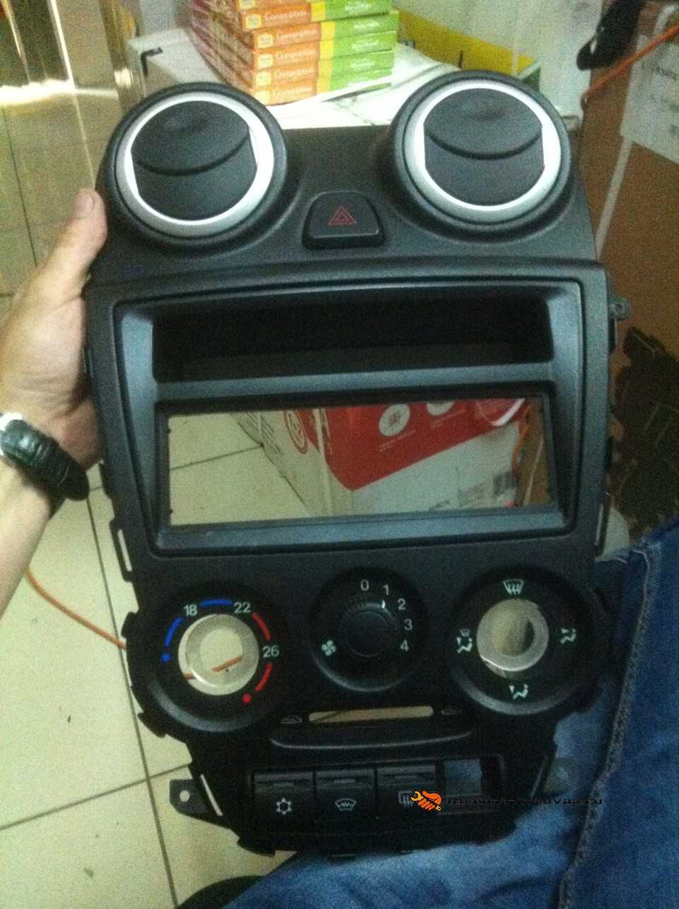 - Ножовкой вырезать главную перемычку в приборной панели. Можно воспользоваться строительным ножом. Уменьшить на 5 мм канал для центральных вентиляционных дефлекторов.