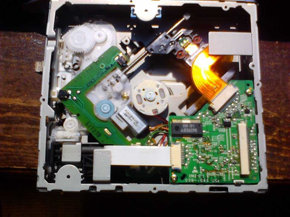 После разборки магнитолы отсоединяют лентопротяжку или плеер для дисков.