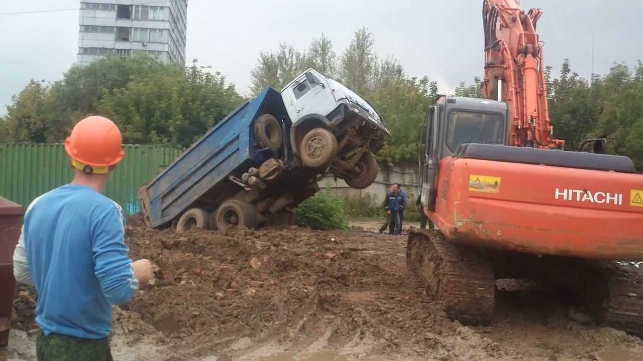 Редкий случай, когда самосвалу КамАЗ-55111 не хватило проходимости. Снимок сделан в Москве в 2013 году