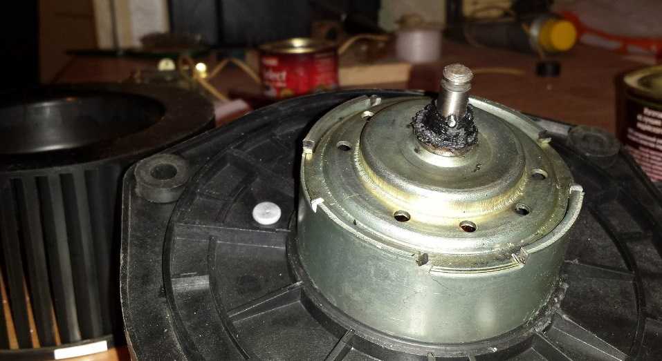 Для начала нам нужен новый вентилятор (лучше на подшипниках, но я покупал из того, что было).Из личного опыта — проверьте, что новый вентилятор нормально вращается, если покупаете в первом попавшемся магазине, иначе может случиться неприятность. Со своим вторым мотором отопителя я подумал — ну хоть как-то крутит и ладно, после чего получил вот это: