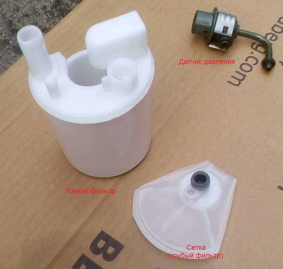 - В зависимости от фильтра грубой очистки, могут возникнуть трудности с его монтажом. Они обусловлены наличием двух пластиковых выступов, которые не дают зафиксировать элемент на бензонасосе. Поэтому потребуется сточить их при помощи напильника;