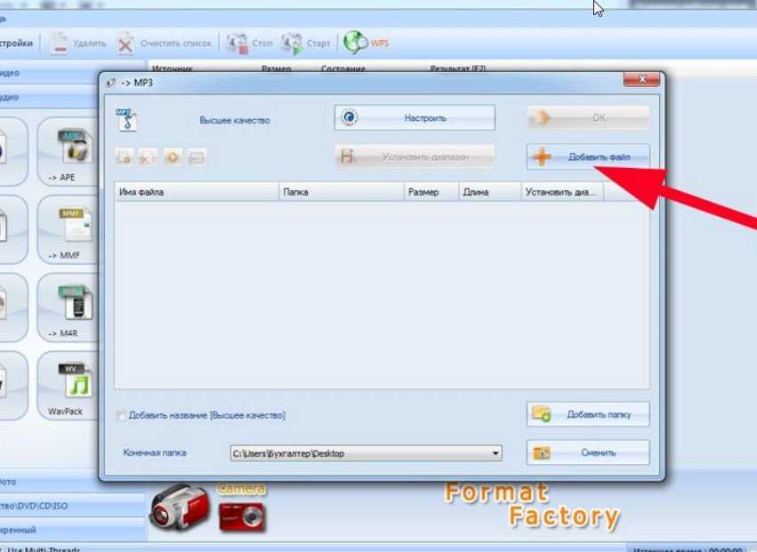 Конвертируемые файлы выбираются и перемещаются в программу кнопкой «Добавить файл»