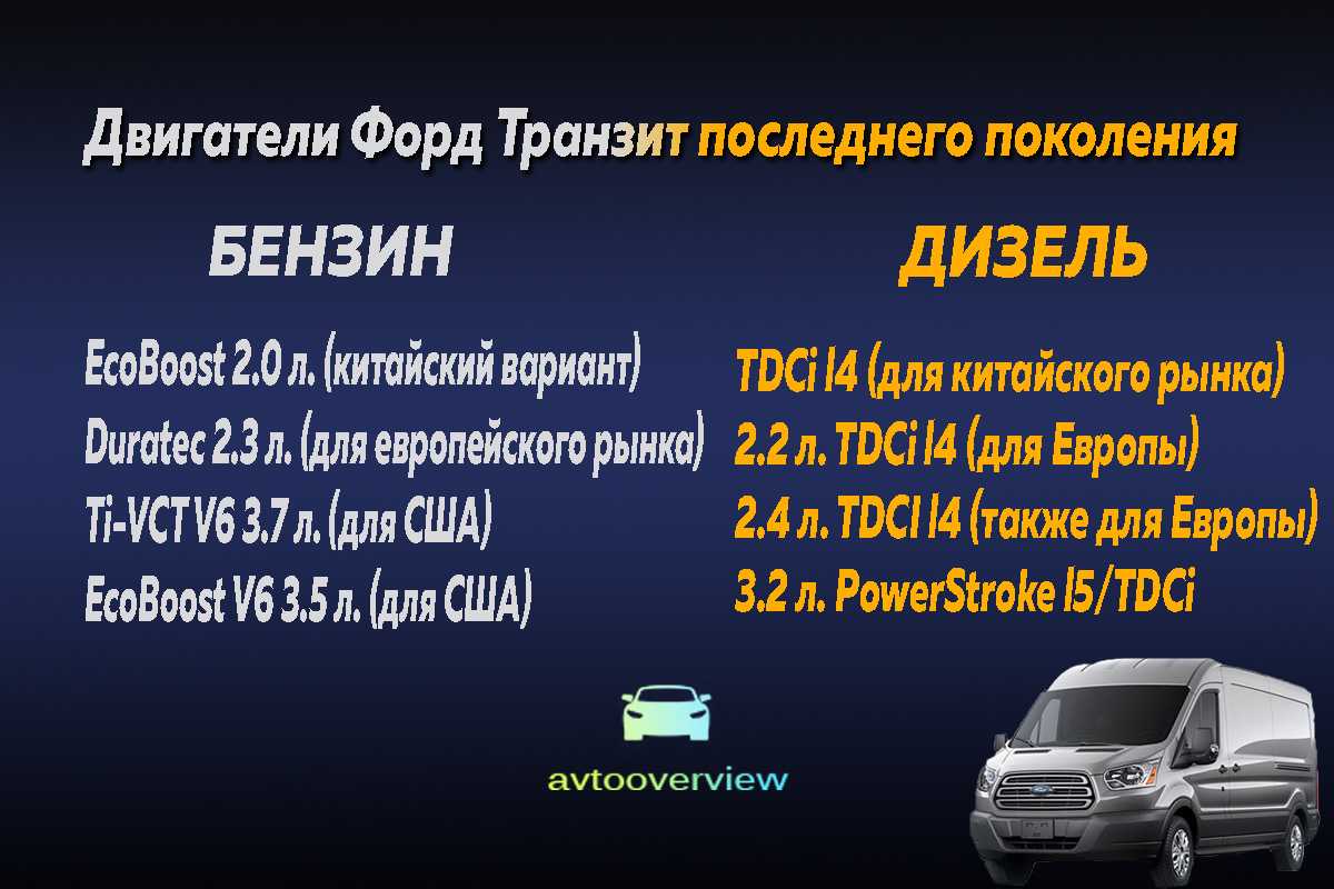 Моторы на Форд Транзит бывают разных типов, они отличаются по объему и мощности. Наиболее популярны следующие модели: