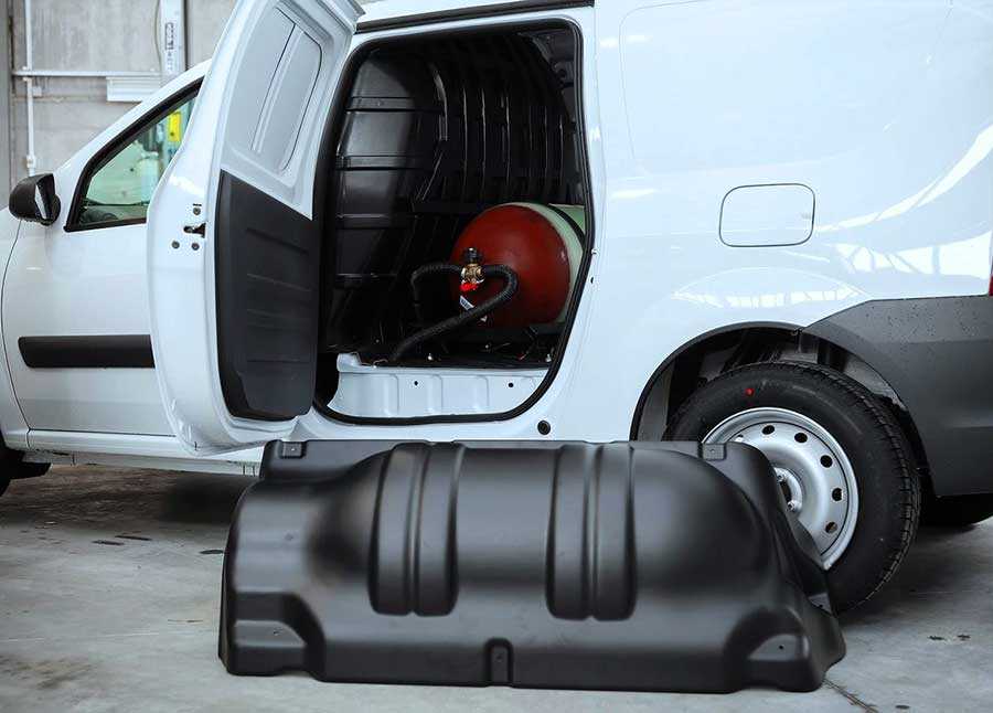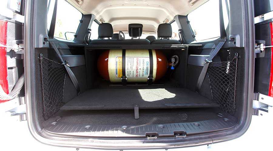 Основная составляющая установки ГБО (газобаллонного оборудования), которым снабжен двухтопливный универсал — металлокомпозитный баллон объемом 90 литров, размещенный в салоне за вторым рядом сидений. Рядом располагается топливный бак.