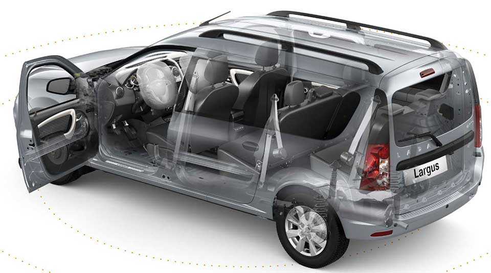 На всех сиденьях есть трехточечные ремни безопасности и подголовники. Водитель и сидящий впереди пассажир имеют передние и боковые airbags. Лада Ларгус 2018 полностью соответствуют действующим европейским требованиям по пассивной безопасности. Это наличие:
