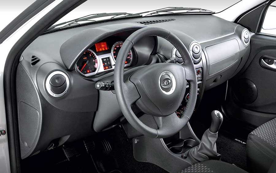 Кабина почти не отличается от логановской, разве что другой козырек панели приборов. За парой сидений установлена сплошная пластиковая перегородка, отделяющая водительскую зону от кузова. В этом “заборчике” нет лючков для размещения длинномеров, зато он прочный – при резком торможении или, не дай бог, ДТП не позволит грузу “наехать” на водителя и пассажира.