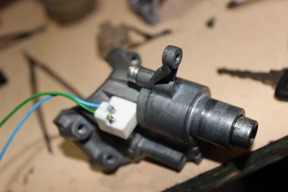 смари видишь белую хрень с двумя проводами , так вот в этой хрени два контакта , а в личинке замка есть штырек , при засовании ключа штырек замыкает контакты