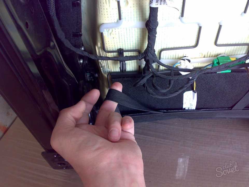 2. Разложите чехлы, снимите их затяжки, исполненные, как водится, из неудовлетворительно крепких материалов. Вставьте в отверстия провод в виниловой оплетке подходящего размера, тот, что характеризуется высокой прочностью и при необходимости легко затягивается. Тесьма из сходственных материалов помогает в равномерном разделении усилия на затяжках. Так вы сумеете уберечь их от допустимого обрыва.