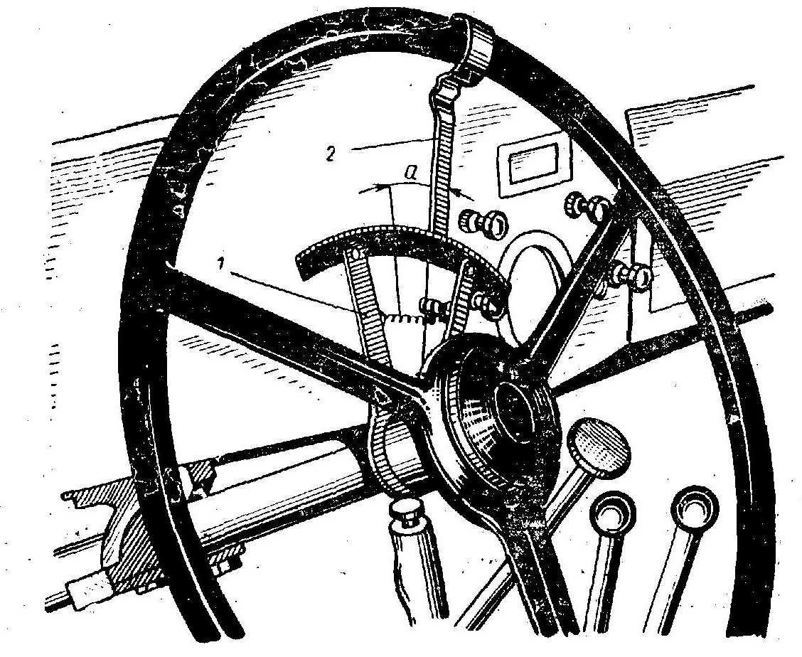 Чтобы проверить величину люфта руля, лучше всего пользоваться люфтомером. Как это делается? Управляемые колеса установить в положение, соответствующее движению по прямой, люфтомер закрепить на кожухе колонки, а его стрелку на ободе. Руль поворачивать влево (выбирая свободный ход) до начала увеличения сопротивления дальнейшему поворачиванию и в этом положении установить «нуль» шкалы против стрелки. После этого руль поворачивать вправо на величину свободного хода. Шкала люфтомера покажет величину свободного хода рулевого колеса.