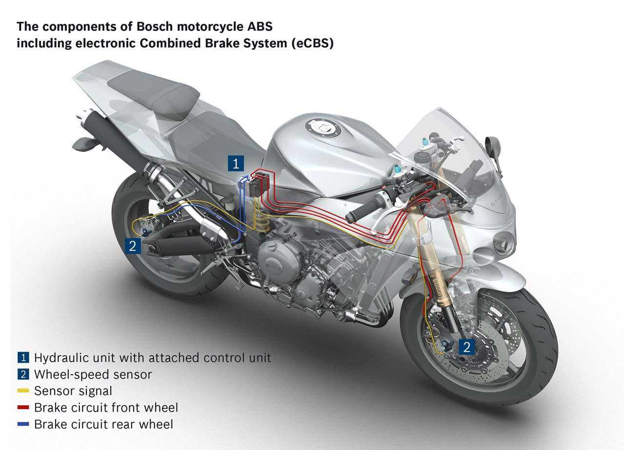 Принцип действия системы антиблокировки заключается в поочередном создании давления в тормозных контурах и прижимного усилия тормозных колодок к диску. Делается это специальным насосом, подавая тормозную жидкость из гидроблока к рабочим тормозным цилиндрам либо блокируя ее поступления электроклапанами.