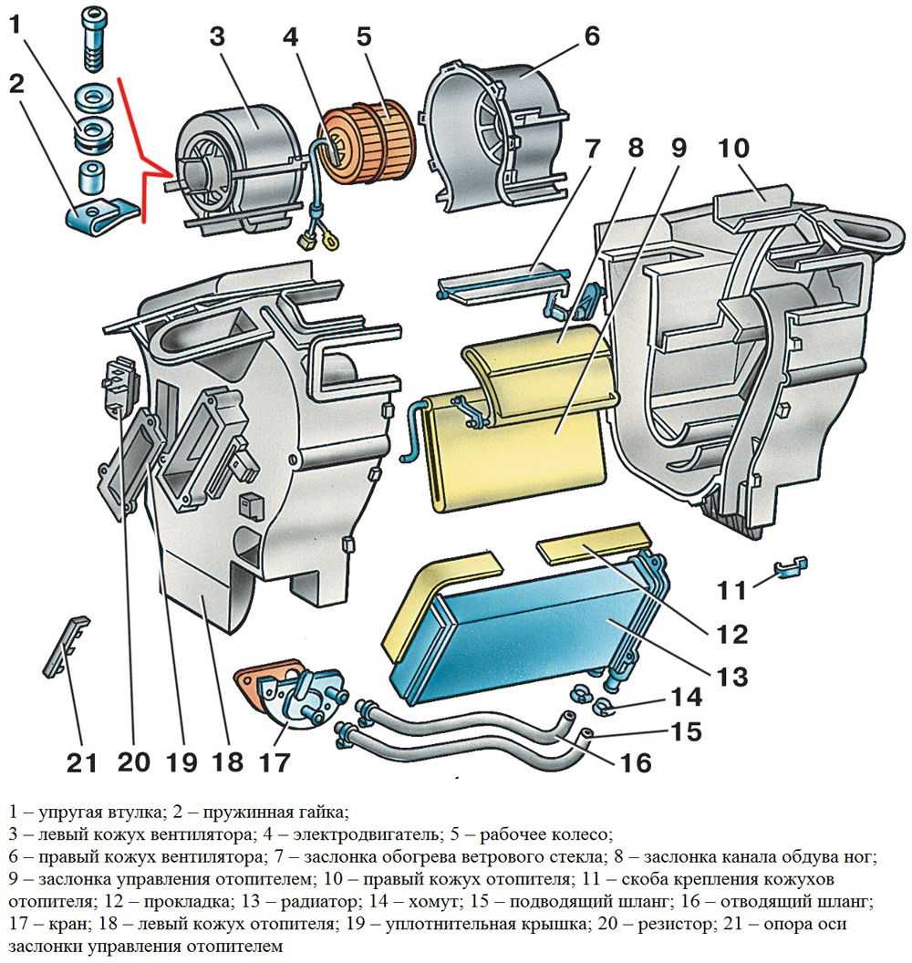Эти компоненты отопителя ВАЗ 2110 связаны и работают по следующему принципу: