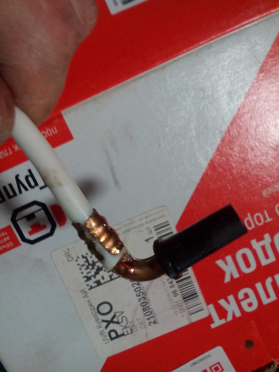 Все началось с того что машинка начала дико дергаться при наборе скорости или подъеме в гору.Хватило меня на недели две такое «езды» и решил заняться таки поиском наисправности. Грешил на карбюратор, потом на свечи и сперва решил произвести ревизию системы зажигания. Почистил свечи, отрегулировал зазор — стало получше, но проблема не решилась. Почистил контакты в крышке трамблера, разносчик. Дошло дело до ВВП (не тот который «старший брат», а высоковольтные провода). Меряю я значит сопротивление их и прихожу в ужас — три из четырех свечных проводов не прозваниватся мультиметром вообще (даже на пределе 2000 КОм)!Проводам моим всего 1 год польская Prima силиконовые. Одолжил из выброшенного комплекта Master-Sport три полудохлых провода но 25 КОм (норма 4-8 КОм для тех кто не в теме)) ) и задался мыслью изготовить провода с медной жилой, а не этой угольно-волоконной дрочью внутри. Погуглив немного решил изготовить такие провода путем переделки из существующих силиконовых проводов. Вытянуть пасатижами черную жилу из изоляции оказалось делом средней трудности. Жила приклеивается к изоляции только в зоне обжима наконечников. Немного ВД-40 в зазор жилы и изоляции 1 мин терпения и удерживая пасатижами край жилы потихоньку сдвигаем изоляцию. Будут слышны два четких «хрусь» — это как-раз жила отклеивается от изоляции в вышеупомянутых местах. Далее вытягиваем ее, продуваем канал ВД-40 и с помощью проволочки от пластиковой гофры для проводки потихонечку затягиваем внутрь желанный медный провод. Провод я выбрал марки МГТФ (сечение не подскажу ибо подбирал из существующих в запасах кусков. Ну примерно 0,25) провод хорошо закрепляем к проволоке при этом так что бы не соорудить мега-узел, который не пройдет в отверстие. Конец проволоки зажимаем в тиски или привязываем к чему-то, смазываем провод МГТФ любой смазкой (я мазнул солидолом) для скольжения внутри изоляции и потихоньку медленно и аккуратно без проблем затягиваем его в изоляцию. Провод МГТФ я выбрал не случайно! — у него изоляция из скользкого фторопласта (вы же понимаете что нам лучше будет скользить, а не тормозить))) ).Что делать дальше уже и так понятно -одеваем на провод резиновые пыльники, припаиваем и обжимаем наконечники и радуемся новым впечатлениям от работы двигателя)))). Выложил несколько фото начала процесса, как доделаю все провода — выложу еще наглядных пособий)