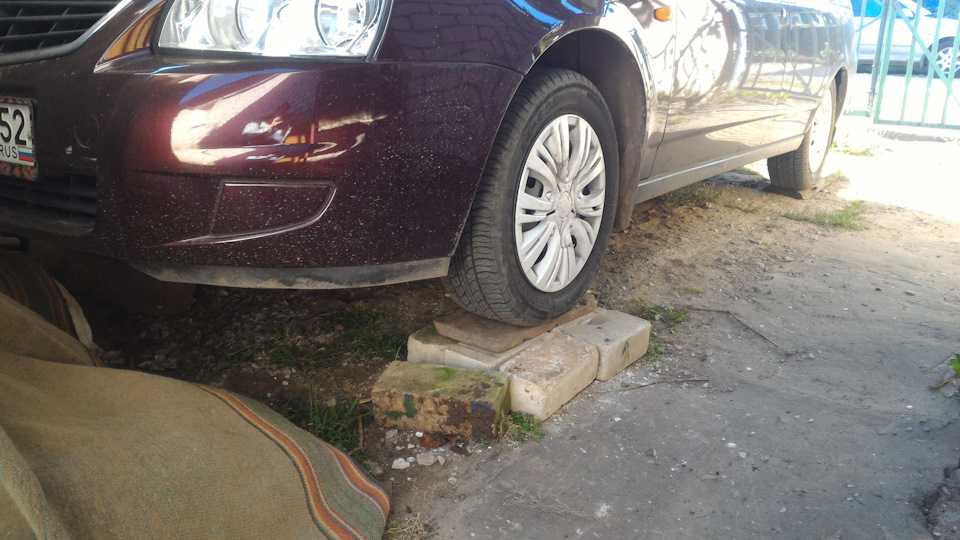 Загоняем машину на подъемник или яму, но так как этого у меня нет, а ехать к брату было лень, то воспользуемся подручными средствами. Скажу сразу, замена антифриза очень долгое занятие. которое занимает несколько часов.