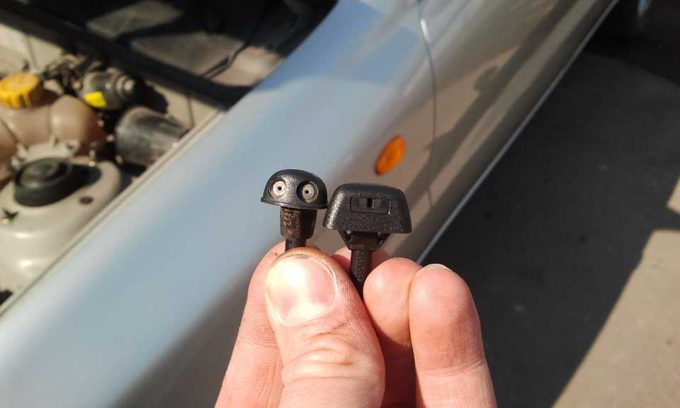 Забитые форсунки — еще одна причина неисправности системы. Забиваются они из-за того, что используется самая дешевая жидкость низкого качества. Для того, чтобы проверить в форсунках дело или нет, просто отключите от них трубку подачи жидкости и включите омыватель. Идет жидкость — проблема в форсунках, нет — читайте статью дальше. Если все таки забились форсунки, их можно либо прочистить, либо заменить на новые.