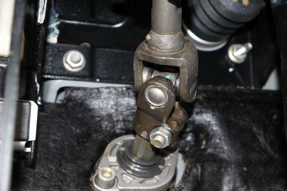 Следует отметить, что рулевой кардан проще всего будет установить, сняв его с руля. Ключом на «13» откручиваем гайку и вынимаем болт, а затем и сам кардан.