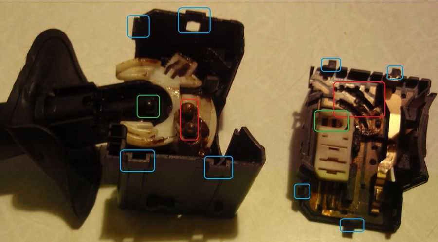 Тем более что они действительно жёсткие и не гибкие. Штырь переключателя Для извлечения штыря переключателя, надо сначала разобрать его корпус. На рисунке ниже показано, что надо открутить и какие защёлки отстегнуть: Корпус переключателя Затем надо снять кнопку сигнала.