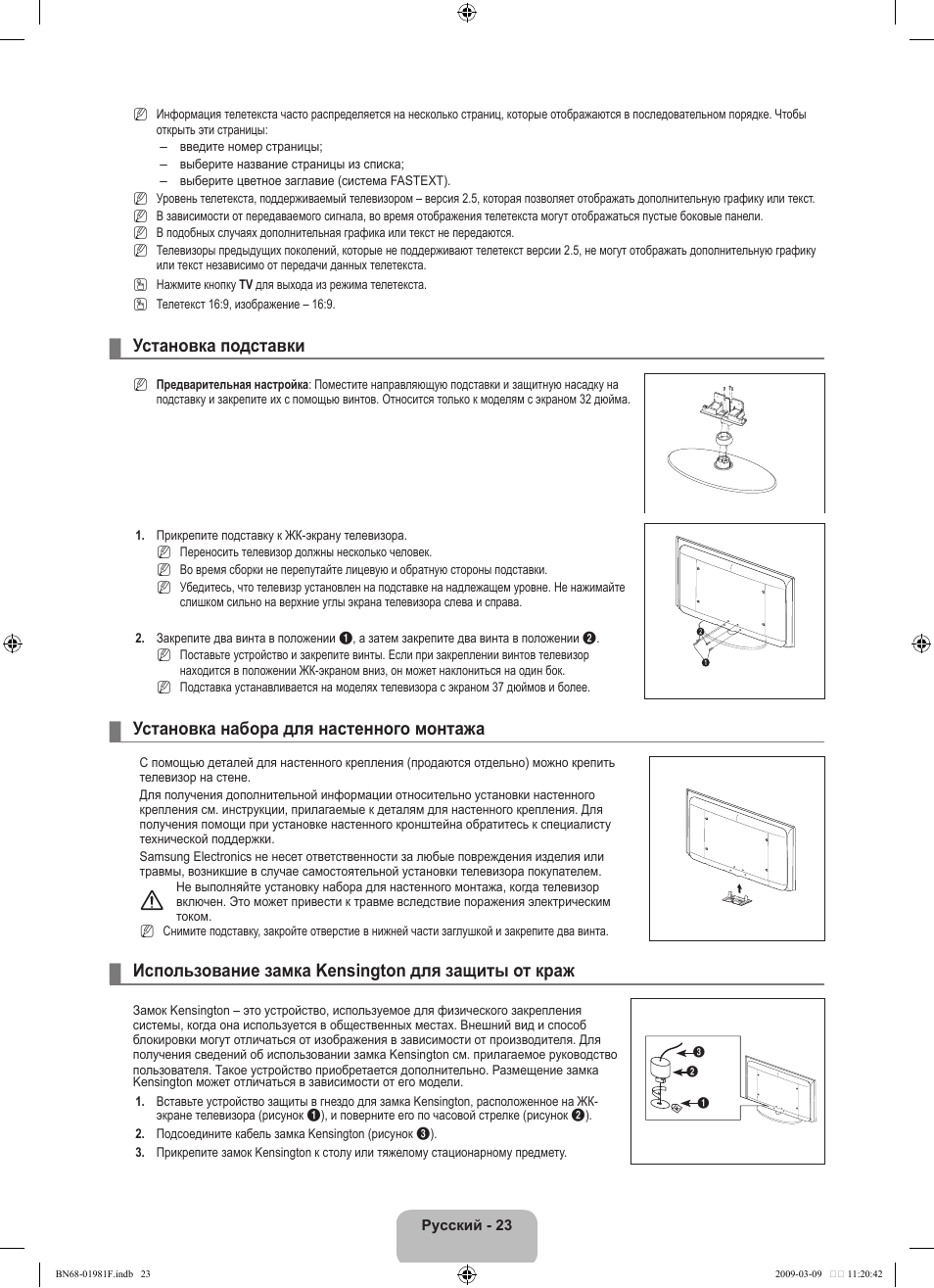 подставку и закрепите их с помощью винтов. Относится только к моделям с экраном 32 дюйма.
