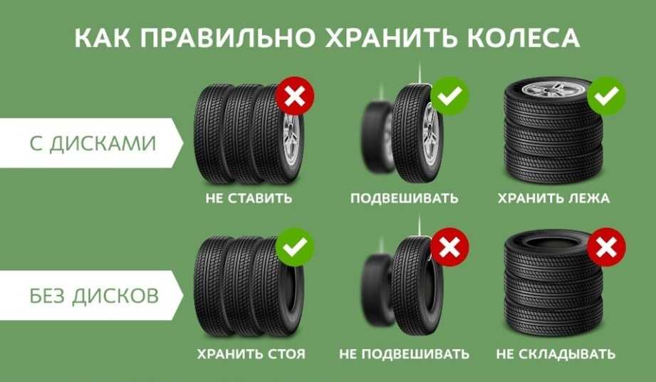 - Помещение для хранения не должно быть сырым и слишком холодным. На резину не должны попадать прямые солнечные лучи;