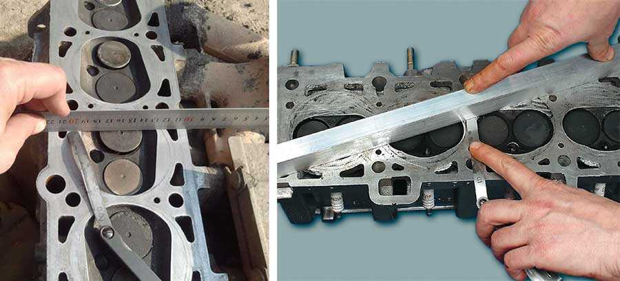 Проведите ревизию поверхности с помощью мерной линейки. С ее помощью определяется наличие и размер зазоров. Последние не должны превышать 0,5-1,0 мм. Если этот параметр больше, головка требует шлифовки или замены. При отсутствии линейки используйте толстый лист стекла, имеющий 5-миллиметровую толщину