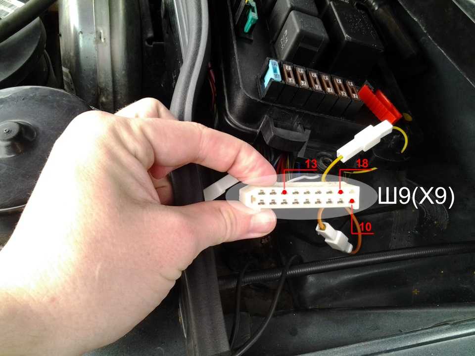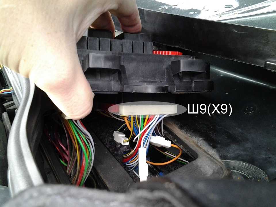 Начинаем работу с разборки монтажного блока. К слову, чтобы легко вытащить фишку из блока, используйте стамеску (самую широкую): прикладывайте стамеску к нужному разъему и молотком выстукивайте. Согласно схеме нужна колодка Ш9 (по новому Х9).