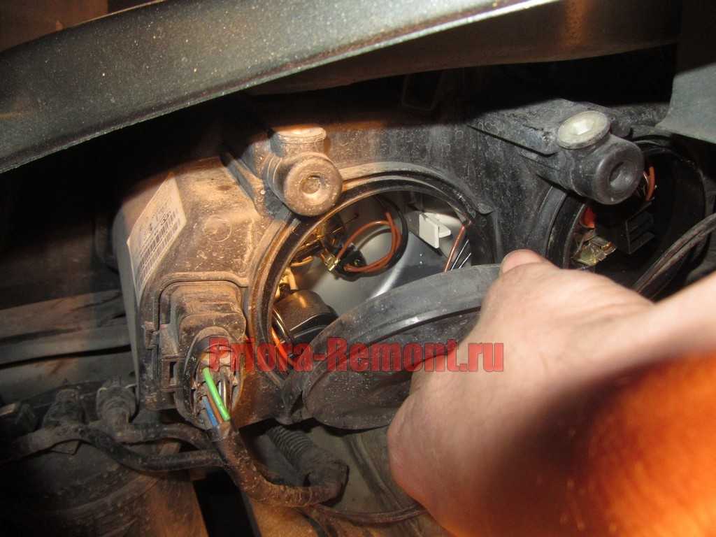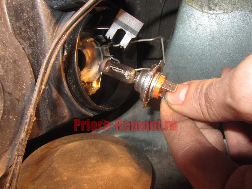 Фото отчет по замене лампы ближнего и дальнего света на Приоре