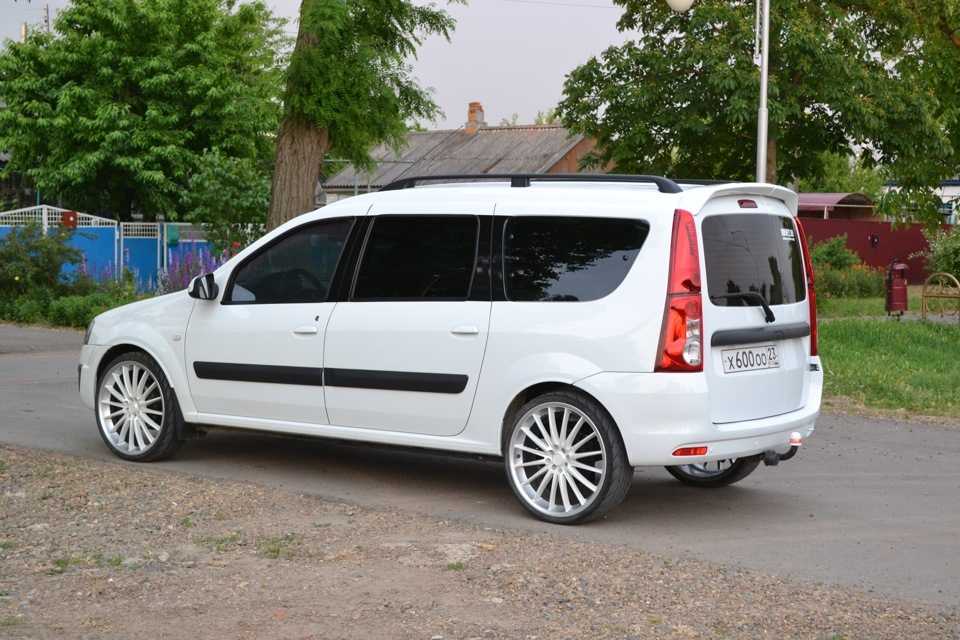 На заводах ставятся штампованные диски на 15 на Ларгус. Кроме штатного, заявленного производителем размера автолюбители ставят шины на 14 дюймов диаметром 185/70R14, указанные в таблице по давлению шин, 165/80R14, менее популярные, подбирая соответствующие диски на Лада Ларгус. Среди 15-дюймовых выбирают шины 195/5R15, редко встречаются 205/60R15, 195/60R15. Автолюбители, предпочитающие шины больших размеров ставят 205/55R16, 195/60R16. Реже встречаются R17: 215/50R17, 205/50R17, совсем уж эксклюзивный вариант — 215/40R18, 215/35R18.