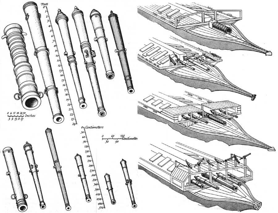 Все военные корабли имеют на вооружении различные виды боевых орудий. Огромное значение для развития ВМФ любой страны имели пушки. Первые корабельные пушки появились еще в 14 веке, однако в течение следующих 200 лет артиллерию практически не использовали. И только в конце 16 века они стали важным элементом морских сражений. Родоначальницей такого оружия на борту судна считается Англия.