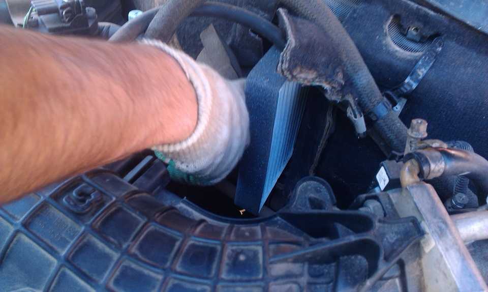 Достать старый элемент и убрать весь мусор, скопившийся в шахте за время эксплуатации автомобиля (для этой процедуры хорошо подойдёт пылесос, но можно воспользоваться и влажной тряпкой) и установить новый (важно соблюдать направление потока, указанного на каркасе).