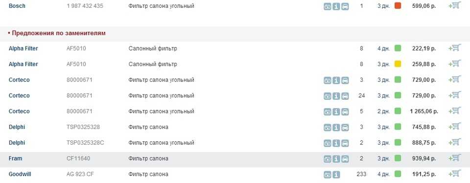 - угольные салонные фильтры;