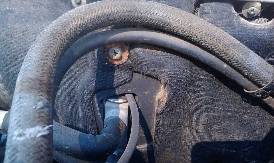 Если к обшивке хомутами прикреплены провода и патрубки, нужно их снять на время замены, после чего прикрепить их на штатное место.