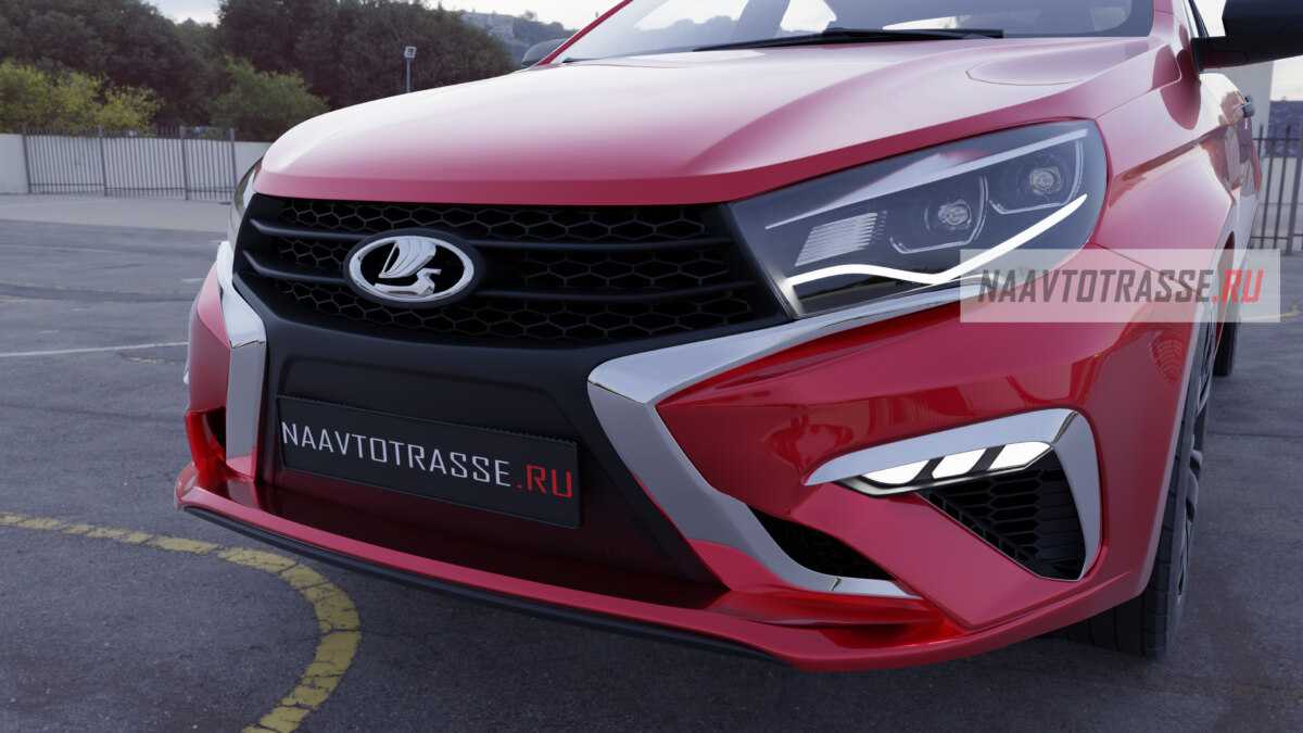 Головная оптика у представленной Granta стала крупнее не только в сравнении с актуальной версией модели, но и с Vesta. Разработчики изменили графику передних фар и дополнили их изгибающейся лентой светодиодов, которые, видимо, будут выполнять роль дневных ходовых огней. По примеру современных Granta и Vesta, у новинки снизу от головной оптики начинают движение расширенные металлические планки, формирующие букву «Х». Они обрамляют решетку радиатора, которая у представленной модели содержит 3 горизонтальные ламели, изготовленные из пластика.