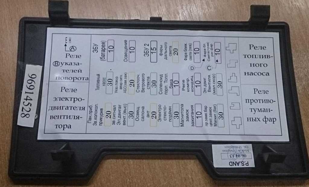 Таблица: назначение предохранителей автомобиля «Дэу Нексия»