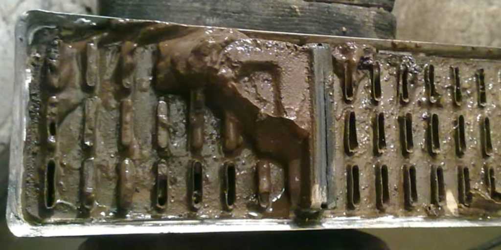 Засор, образующийся изнутри, получается, из-за скопления окислов образующихся вследствие окисления алюминия. Так же если антифриз долго не менять, то он способен разрушаться и выпадать в осадок, который в скором времени засорит радиатор.