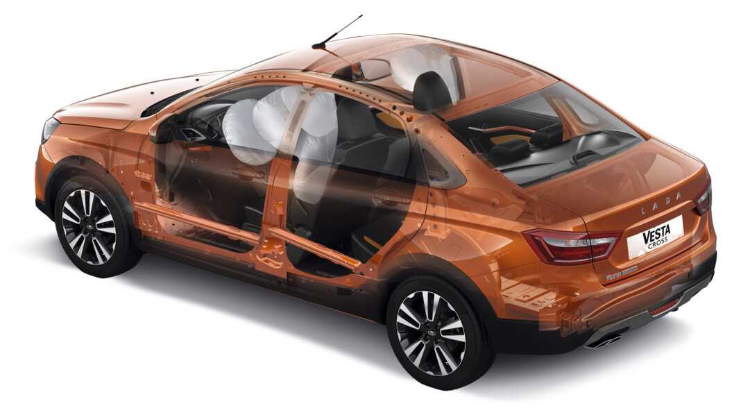 В систему безопасности включены передние и боковые подушки, подголовники на задних сидениях, крепления для детского кресла, автоматическое отпирание дверей и включение аварийного сигнала в случае столкновения, автоматичекое запирание в момент начала движения по дороге, включение аварийной сигнализаци при внезапеом торможении, комплексы ABS и ESP, датчики света и дождя, противоугонная защита, круиз-контроль и ЭРА-ГЛОНАСС, всё это ставит новый кузов Lada Vesta SW Cross 2019 модельного года на одну ступень с конкурентами иностранного производителя.