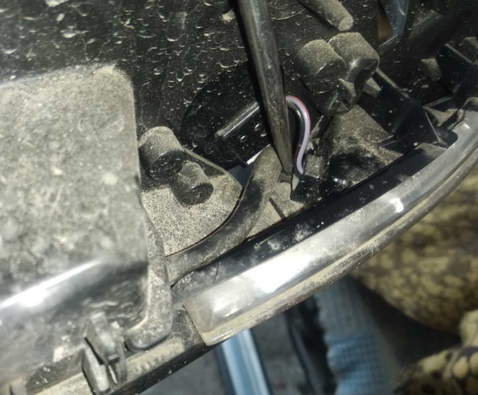 - Отщелкиваем повторитель левого поворотника, извлекаем повторитель поворота (далее — ПП).