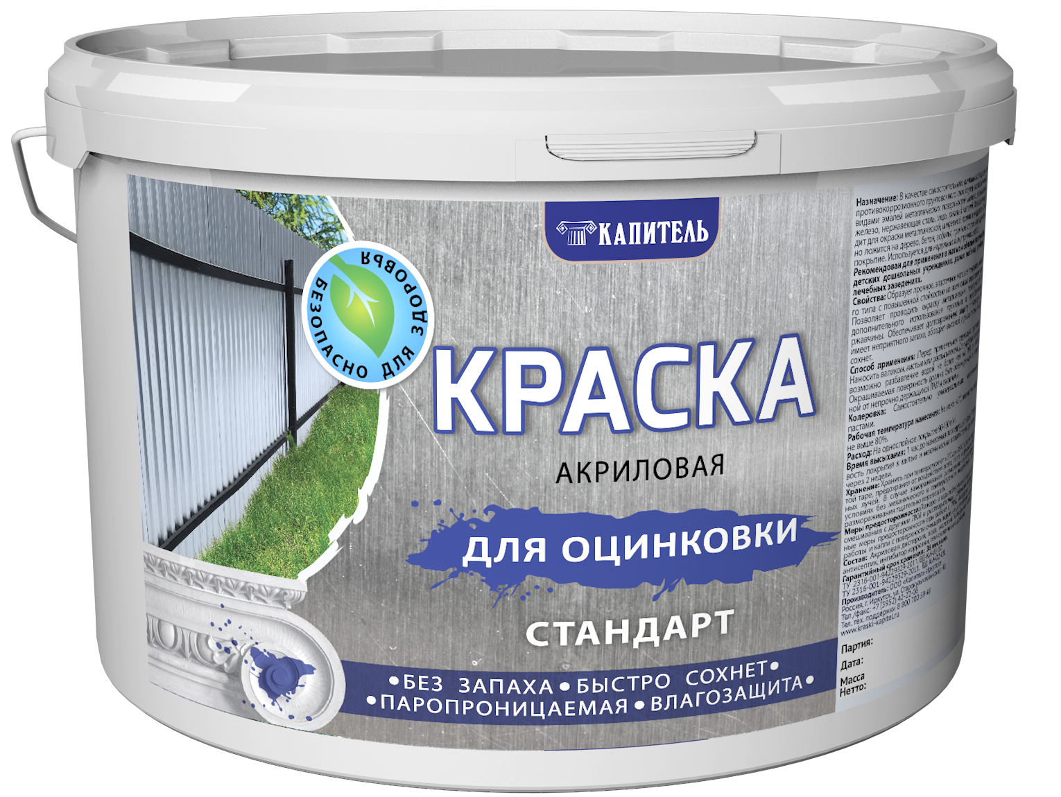 Первым в рейтинге средств для окрашивания оцинкованной стали рассматривается акриловый вид красок. Они создают надежную защиту, составным компонентом включают антикоррозийные вещества. Также отмечают следующие преимущества: