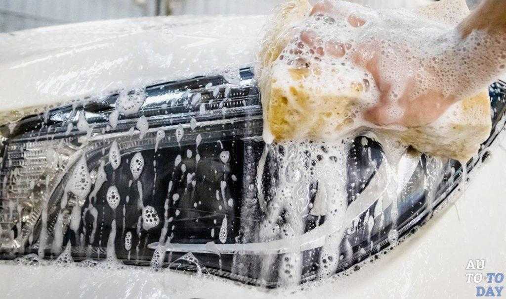 Во время механической мойки прямые движения выполняют без нажима, чтобы оставшимися частицами не поцарапать ЛКП. Основное правило – ополаскивать губку после очистки каждого элемента. Только после этого можно наносить раствор с шампунем на поверхность кузовных деталей.