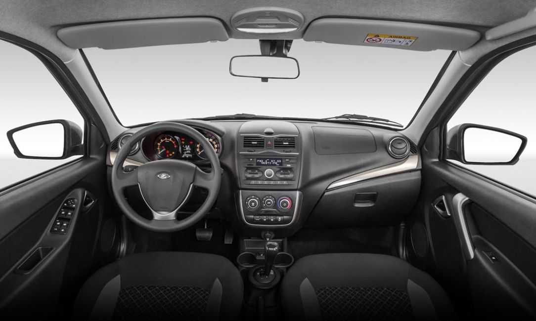Салон можно назвать новым и не новым одновременно. Ведь, если раньше на Гранту и Калину ставили разную переднюю панель, то теперь, с «объединением», все варианты получили интерьер от так называемой Калины-2. Основные изменения салона – подсветка клавиш белым цветом (раньше был зелёный) и обрамление в форме литеры Х вокруг центральных дефлекторов системы вентиляции. Кроме того, на фото салона заметно, что приборы получили полукруги оранжевого цвета. А цифры теперь «смотрят» в стороны.