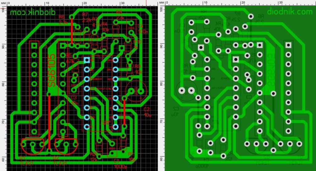 Силовая часть схемы и развязывающий драйвер буду собирать на печатной плате размером 80*101мм, управляющая часть собрана на отдельном куске текстолита размерами 45*50мм. Скачать печатную плату Прочитайте Получить пароль от архива