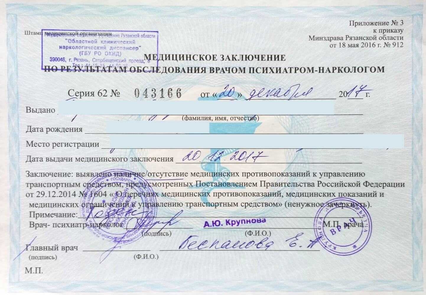 Образец заключения от нарколога