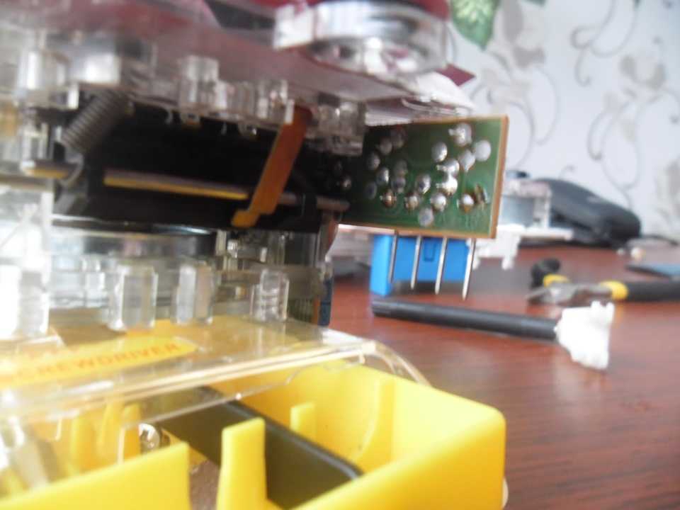 Затем отодвигаем плату и пинцетом ставим шестерню на место