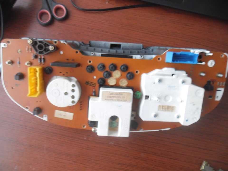 Не решился я снимать стрелку, поэтому ставил как и снимал, без полного разбора спидометра. Первым делом снял приборку и принёс домой. Перевернул и начал разбор. Ничего сложного. Что-то откручиваем, что-то достаём. В общем смотрите.