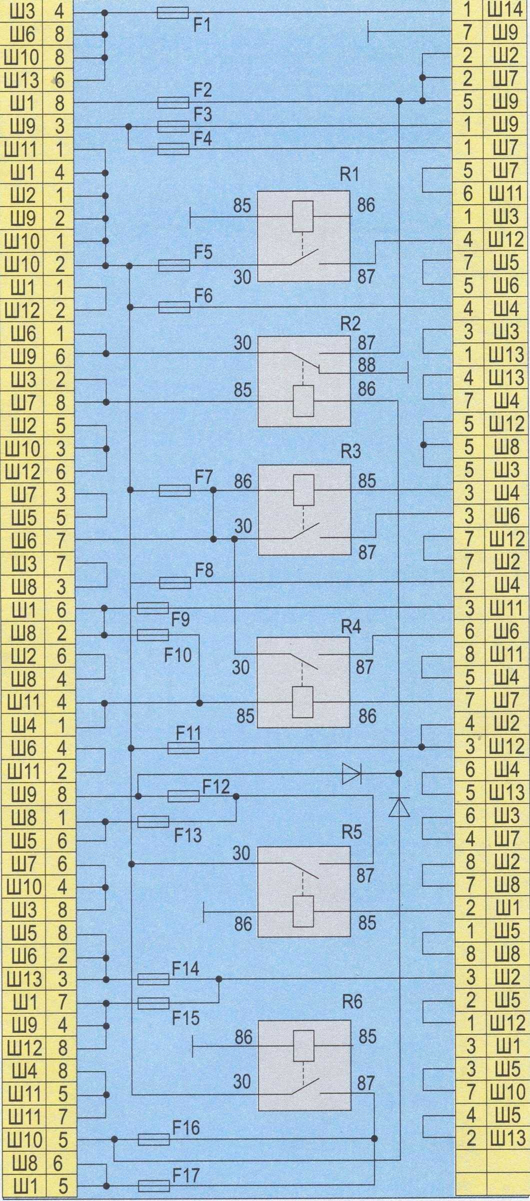 Предохранитель F15 установлен в цепи габаритных огней правой передней фары и левого заднего фонаря, а также: