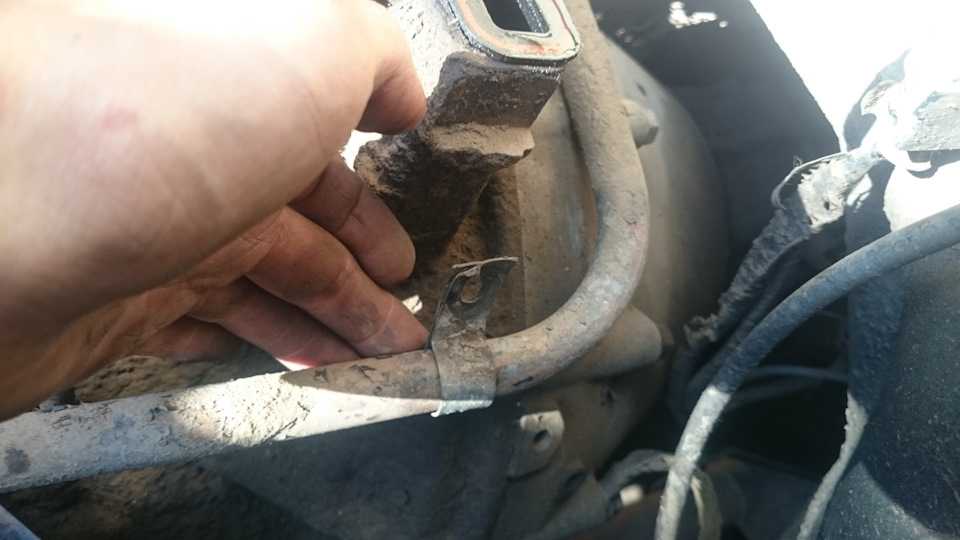 Дальше, откручиваем выпускной коллектор открутив 8 гаек, обратите внимание на шпильки, если они длинные, то снять его не получится, или возникнут проблемы при установке, в таком случае лучше открутить приёмную трубу, как это пришлось делать мне,