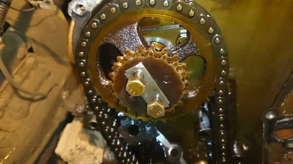 и вытаскиваем сам гидронатяжитель.Затем отворачиваем шестерни распредвала и не сильными ударами молотка сбиваем их, обратите внимание, штифт в это время должен находиться вверху,