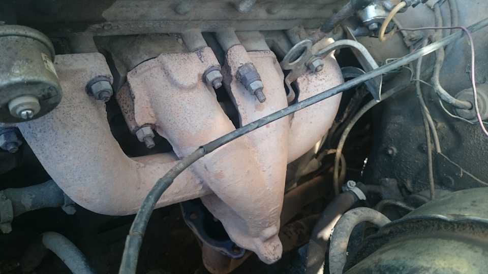 в области соединения блока цилиндров и выпускного коллектора выкручивают гайки и болты;
