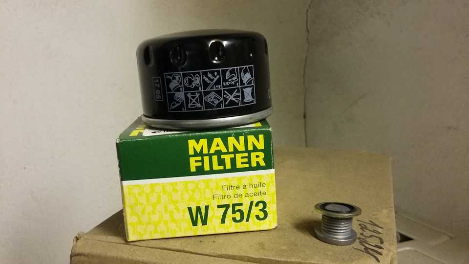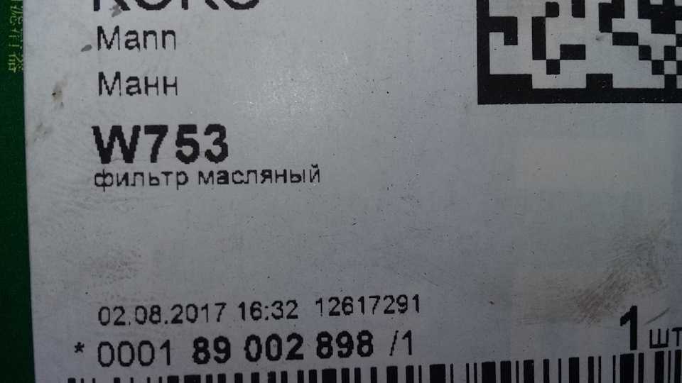1. Масляный фильтр MANN ( артикул W753), либо MAHLE (артикул OC467). Использую именно этих производителей, т.к. у них всегда корректно (если это не подделка конечно) работает клапан. Работа клапана выражается в том, что когда вы заводите автомобиль на холодную — лампа давления масла после запуска ДВС гаснет практически мгновенно(к сожалению не у всех производителей масляных фильтров такое происходит). Это означает, что после стоянки авто с заглушенным ДВС масло из фильтра не стекает в поддон и при запуске сразу подается в масляную систему, тем самым максимально снижая износ. А ведь основной износ исправного ДВС происходит как раз при холодном запуске! В этот раз использовал MANN.