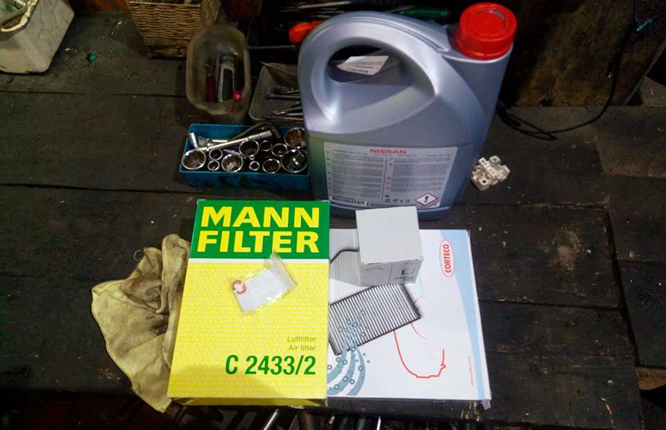 И так для замены масла в двигателе и масляного фильтра на Ниссан Икстрейл понадобится: